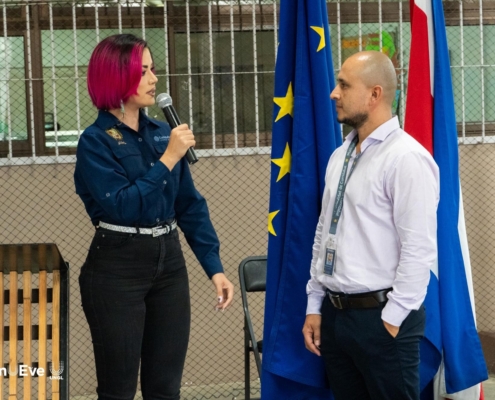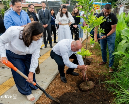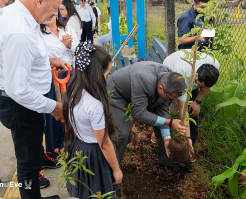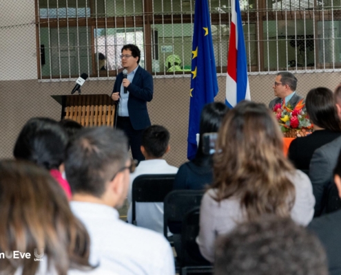 El acto contó con la participación del Embajador de la Unión Europea, Pierre Louis Lempereur; el alcalde de Curridabat, Errol Solano; la Directora de la Unión Nacional de Gobiernos Locales (UNGL), Karen Porras; la supervisora del circuito escolar, Elizabeth Elizondo; autoridades de gobierno, diputados y la comunidad.